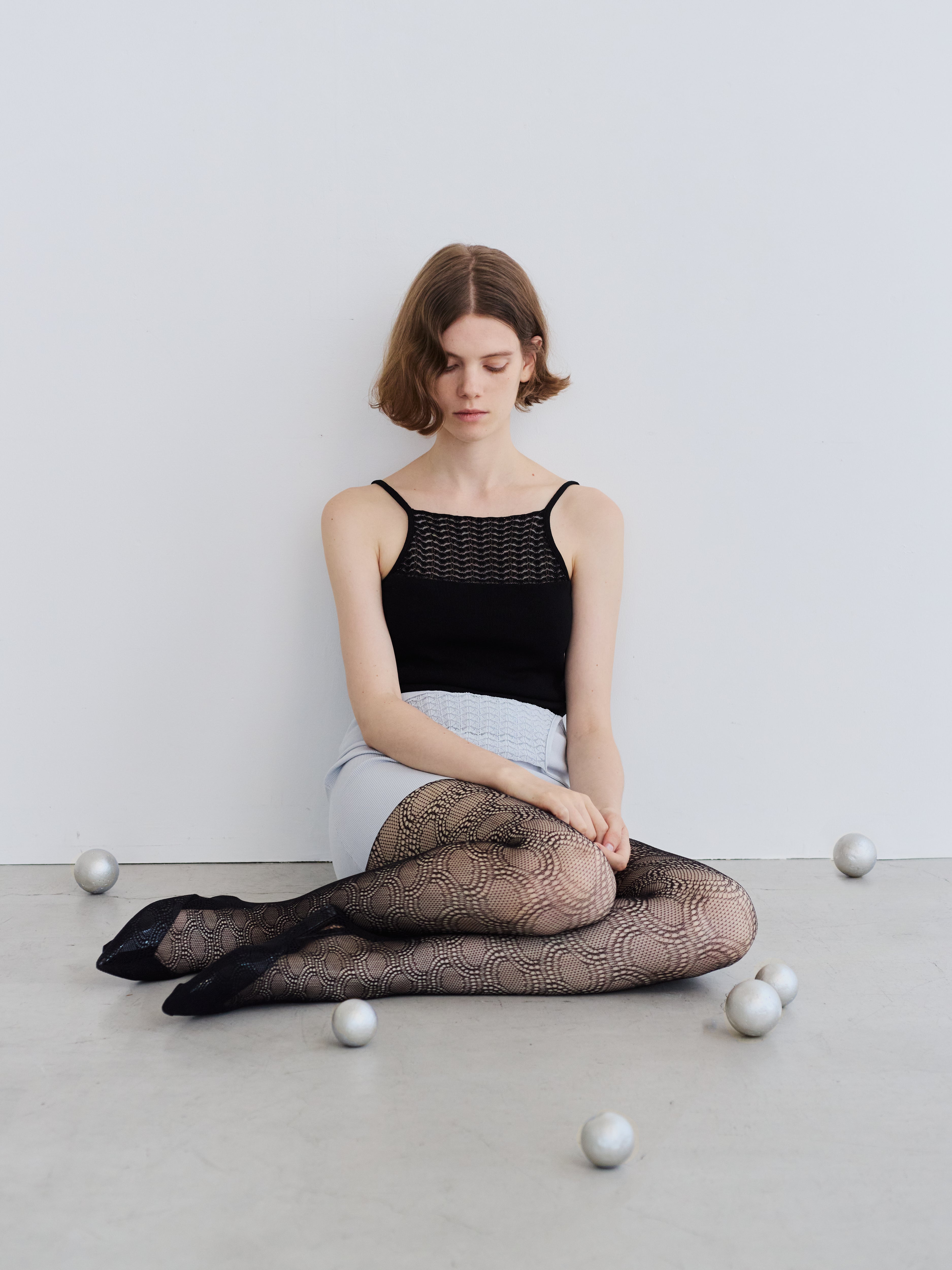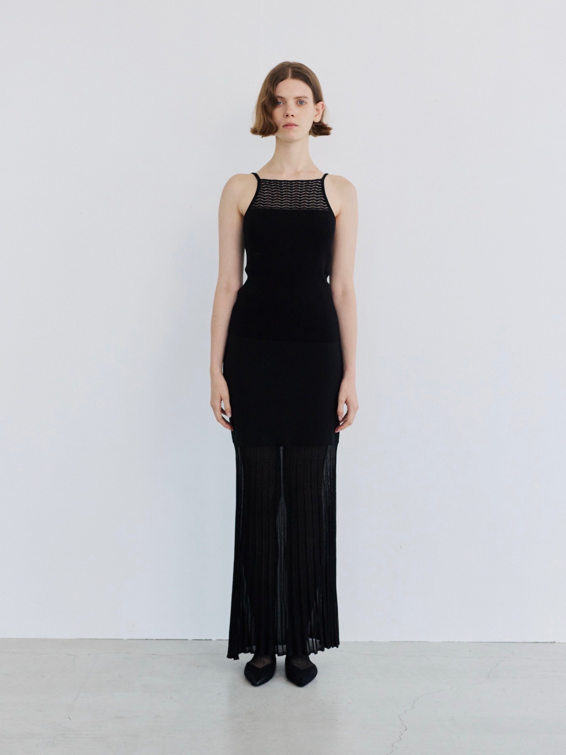 EMILY ODAのシグネチャーの柄をデコルテにあしらったカップインキャミソール。